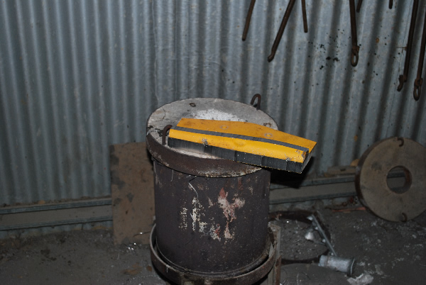 Pick up the pot with pouring tongs – one glove close to pot 650 degrees C.